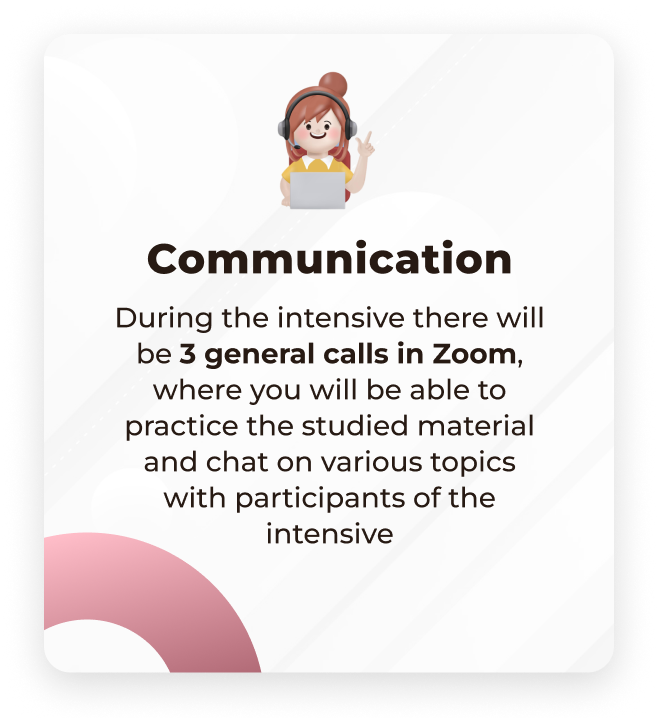 3 online meetings in Zoom with participants and curators for communication in Russian on the studied material